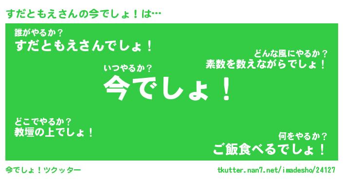 | 伝説のあだ名 | 『伝説のスナイパーすだともえ』 |