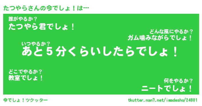 | ヘコむあだ名 | 『たつにー』『なまこ酢』『たつっぺ』 |