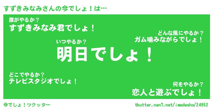 | ヘコむあだ名 | 『すずにー』『豆乳』『すずぷりん』 |