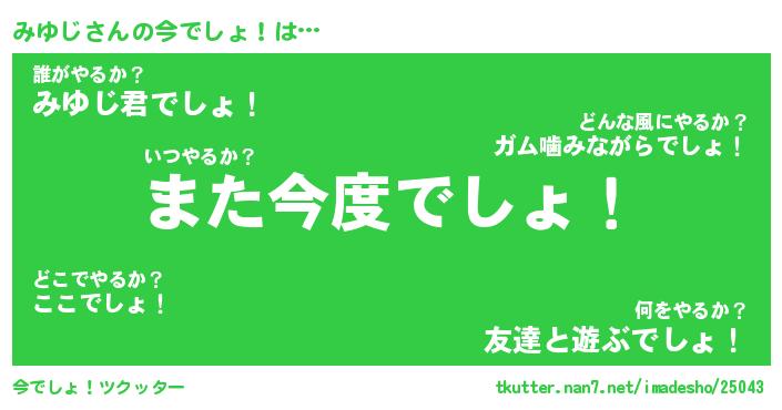 | ピコ太郎風あだ名 | 『ミコ次郎』『ピミ三郎』『ミユ次郎』 |