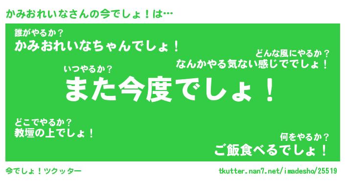 | 胡散臭い通販商品みたいなあだ名 | 『億万長者になれるブレスレット…その名も「かみおれいな」』 |
