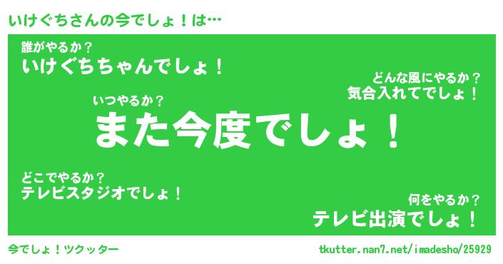 | 意味不明あだ名 | 『ペロリンいけぐち』『永久保存いけぐち』 |