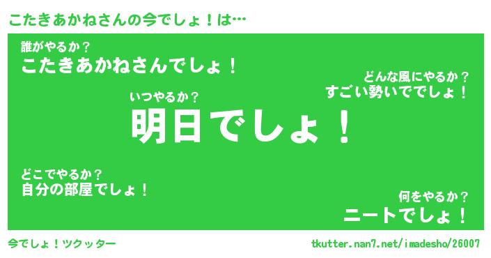 | 伝説のあだ名 | 『封印されし傭兵こたきあかね』 |