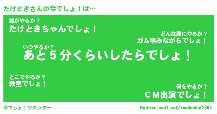 | 意味不明あだ名 | 『ペロリンたけとき』『永久保存たけとき』 |