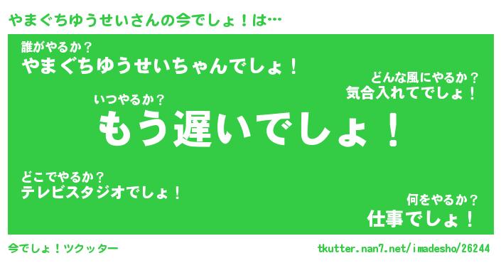 | 伝説のあだ名 | 『伝説のスナイパーやまぐちゆうせい』 |