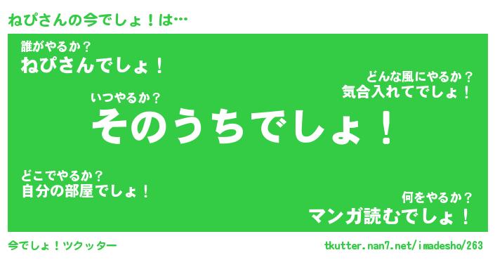| 男性向けラノベタイトル風あだ名 | 『ねぴの憂鬱』『ノーゲーム・ノーネピ』 |