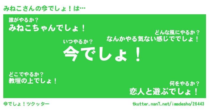 | 伝説のあだ名 | 『伝説のスナイパーみねこ』 |