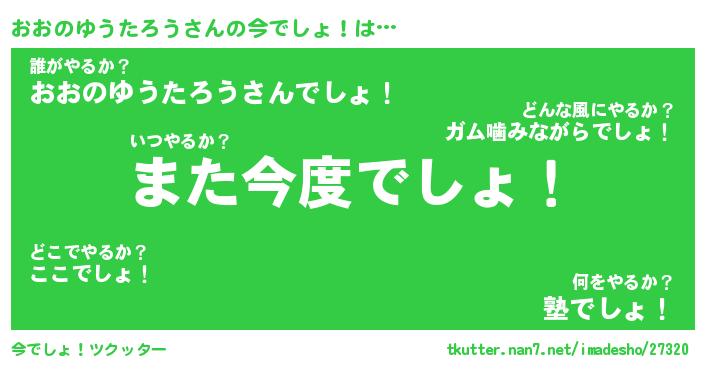 | 胡散臭い通販商品みたいなあだ名 | 『億万長者になれる霊験あらたかなお札…その名も「おおのゆうたろう」』 |