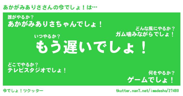 | 胡散臭い通販商品みたいなあだ名 | 『必ず成功するブレスレット…その名も「あかがみありさ」』 |