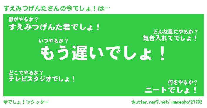 | 伝説のあだ名 | 『伝説のスナイパーすえみつげんた』 |