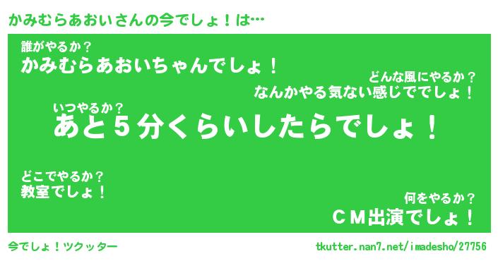 | 恥ずかしいあだ名 | 『プリティーかみむらあおい』『かみちん』 |
