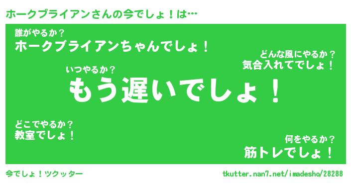 | 胡散臭い通販商品みたいなあだ名 | 『必ず成功するブレスレット…その名も「ホークブライアン」』 |