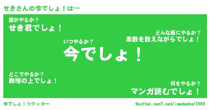| ヒーロー風カッコイイあだ名 | 『スーパーセキ』『ウルトラせきマン』 |