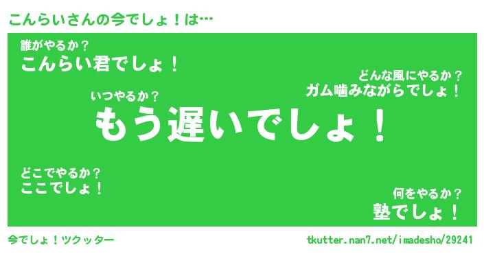 | 男性向けラノベタイトル風あだ名 | 『こんらいの憂鬱』 |