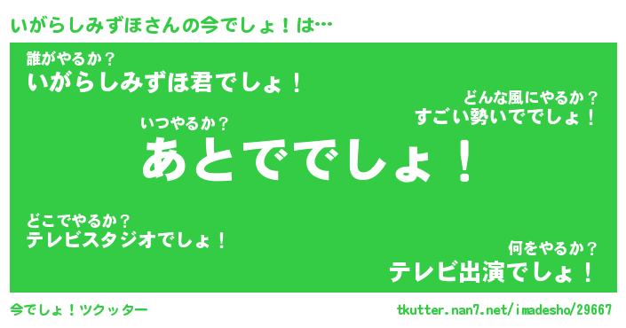 | ヘコむあだ名 | 『いがもー』『豆乳』『いがっぺ』 |