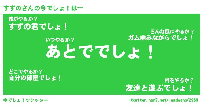 | ヘコむあだ名 | 『すずにゅー』『なまこ酢』『すずを』 |