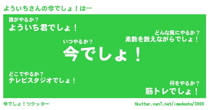 | 意味不明あだ名 | 『ペロリンよういち』『永久保存よういち』 |