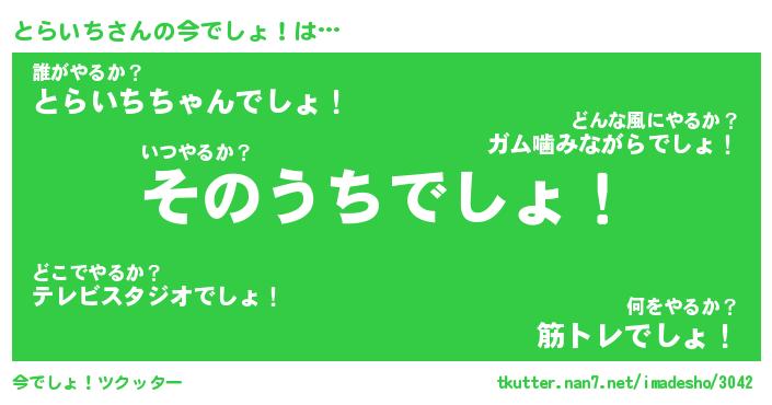 | 意味不明あだ名 | 『ペロリンとらいち』『永久保存とらいち』 |