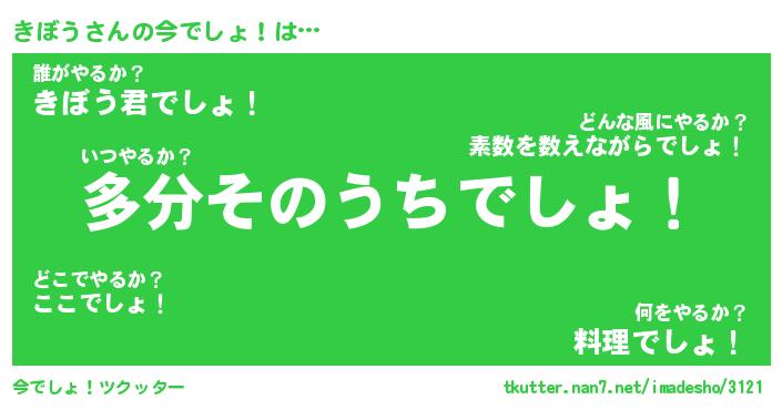 | 料理風あだ名 | 『節約★きぼうと油揚げの玉子丼』 |