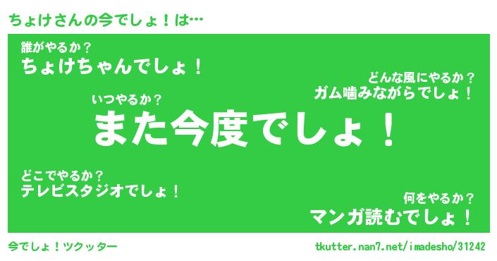 | ヒーロー風カッコイイあだ名 | 『スーパーチョケ』『ウルトラちょけマン』 |