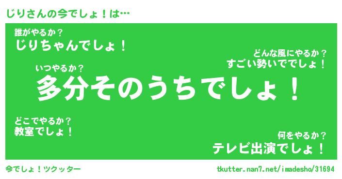 | ヒーロー風カッコイイあだ名 | 『スーパージリ』『ウルトラじりマン』 |