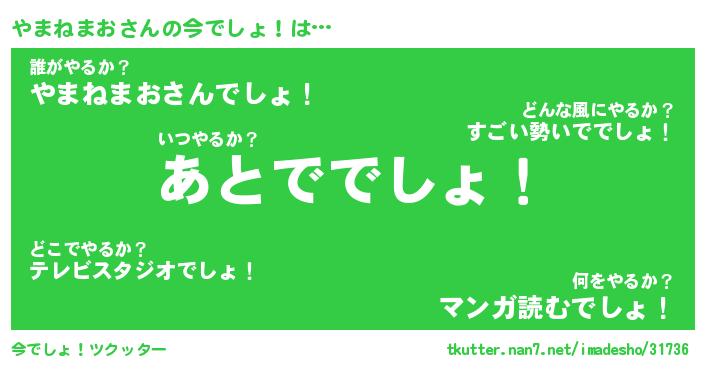 | 肩書あだ名 | 『やまねまお御曹司』『やまねまお団長』 |