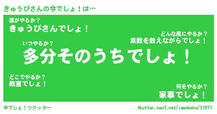 | 男性向けラノベタイトル風あだ名 | 『きゅうびの憂鬱』 |
