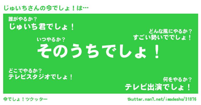 | 意味不明あだ名 | 『ペロリンじゅいち』『永久保存じゅいち』 |
