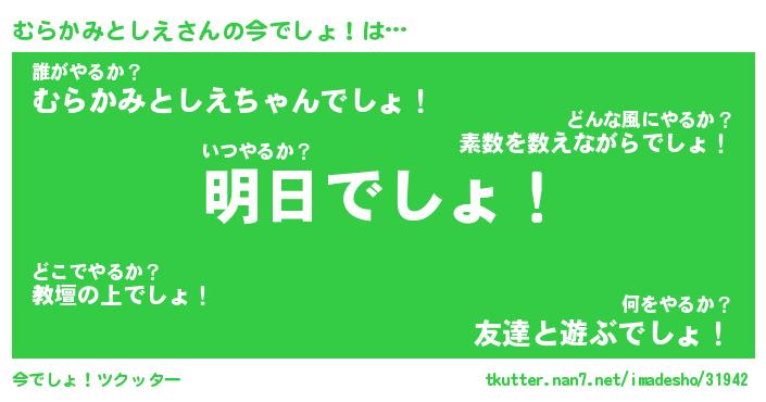 | 肩書あだ名 | 『むらかみとしえ御曹司』 |