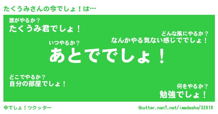 | ヒーロー風カッコイイあだ名 | 『スーパータクウミ』『魔戒騎士タク』 |