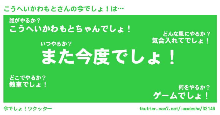 | 伝説のあだ名 | 『封印されしスナイパーこうへいかわもと』 |
