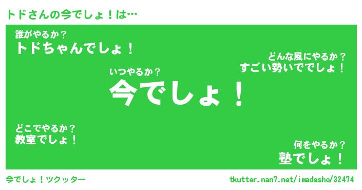 | ヒーロー風カッコイイあだ名 | 『スーパートド』『ウルトラトドマン』 |