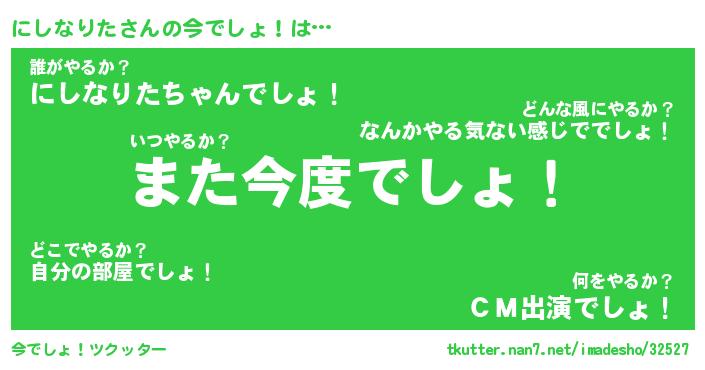 | 肩書あだ名 | 『にしなりた社長』『にしなりた国家主席』 |