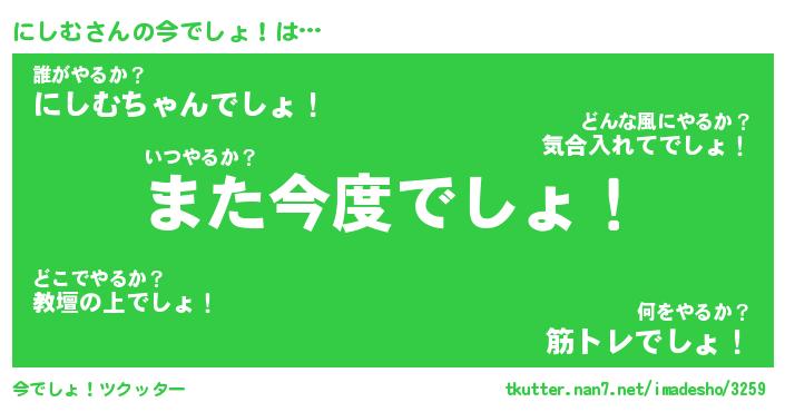 | ヒーロー風カッコイイあだ名 | 『スーパーニシム』『ウルトラにしむマン』 |
