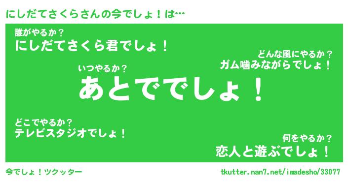 | 恥ずかしいあだ名 | 『プリティーにしだてさくら』『にしちん』 |
