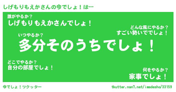 | 男性向けラノベタイトル風あだ名 | 『しげもりもえかの憂鬱』 |