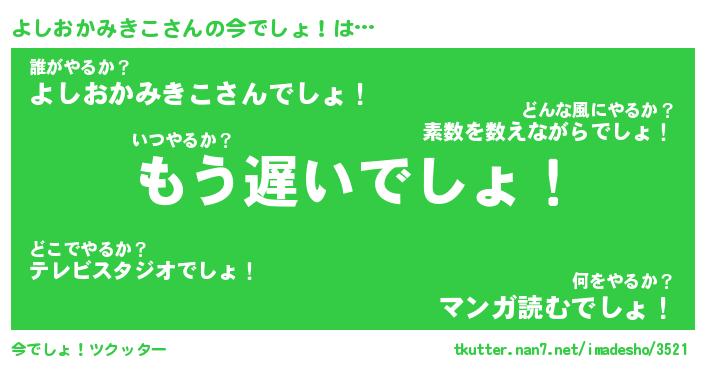 | 肩書あだ名 | 『よしおかみきこ御曹司』 |