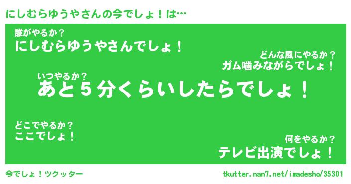 | 恥ずかしいあだ名 | 『プリティーにしむらゆうや』『にしちん』 |