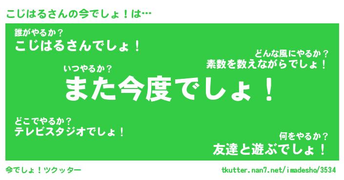 | 意味不明あだ名 | 『ペロリンこじはる』『永久保存こじはる』 |