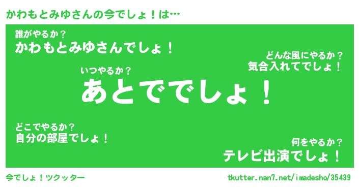| 恥ずかしいあだ名 | 『プリティーかわもとみゆ』『かわっちょ』 |