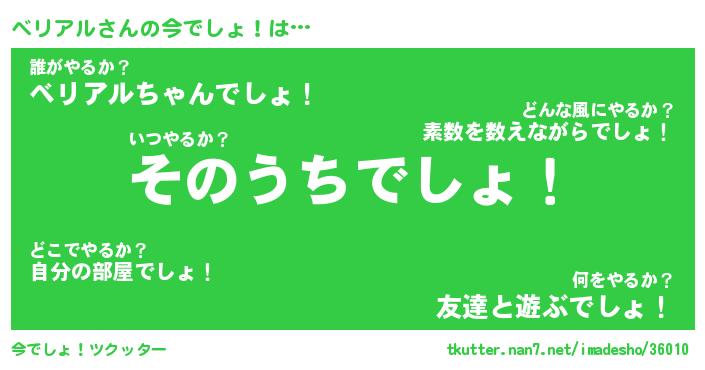 | 意味不明あだ名 | 『ペロリンベリアル』『永久保存ベリアル』 |