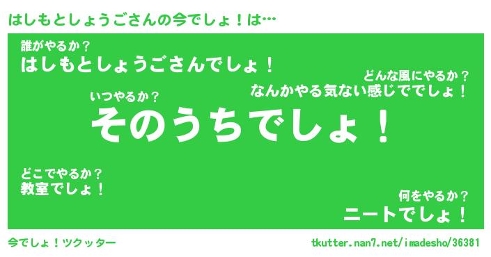 | 胡散臭い通販商品みたいなあだ名 | 『必ず成功するブレスレット…その名も「はしもとしょうご」』 |
