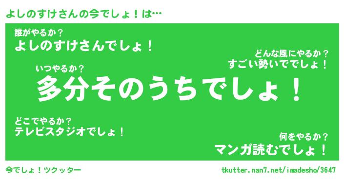 | 肩書あだ名 | 『よしのすけ店長』『よしのすけ総理大臣』 |