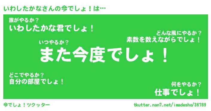 | 男性向けラノベタイトル風あだ名 | 『イワシタカナアートオンライン』 |