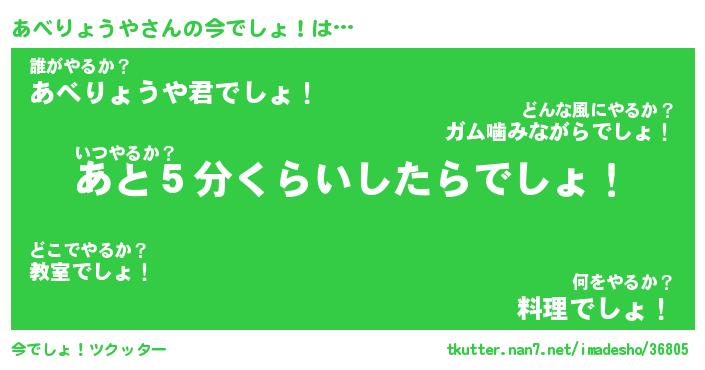 | 料理風あだ名 | 『節約★あべりょうやと油揚げの玉子丼』 |