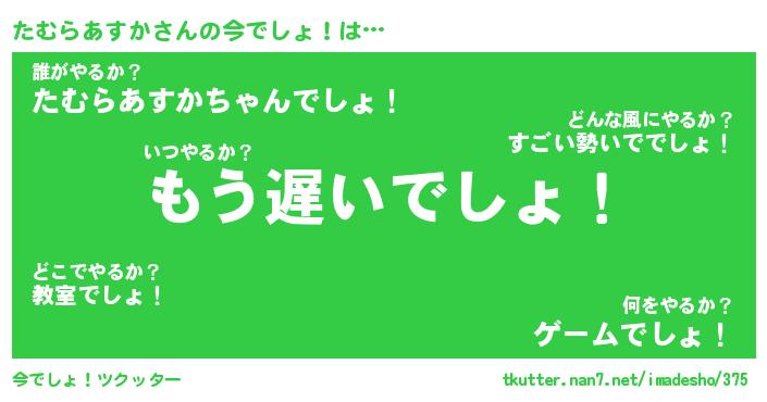 | 胡散臭い通販商品みたいなあだ名 | 『モテモテ間違いなし霊験あらたかなお札…その名も「たむらあすか」』 |