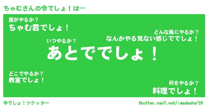 | 料理風あだ名 | 『節約★ちゃむと油揚げの玉子丼』 |