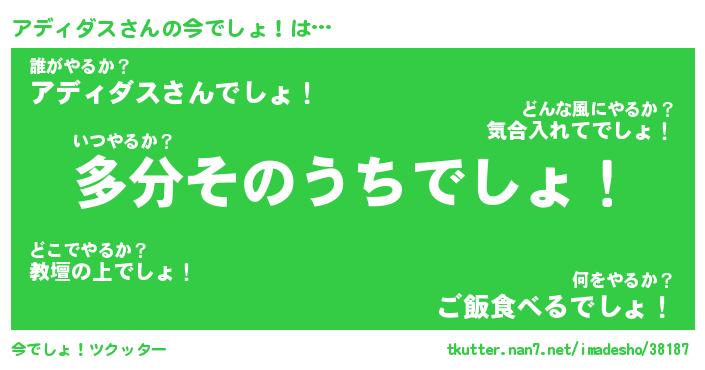 | 料理風あだ名 | 『節約★アディダスと油揚げの玉子丼』 |