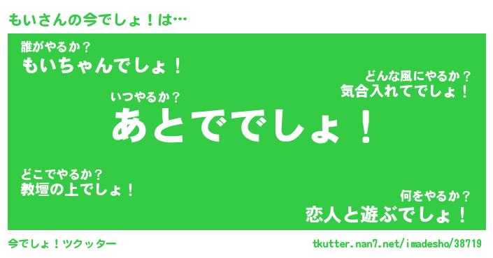 | ヘコむあだ名 | 『もいふぇ~』『レバニラ』『もいお』 |
