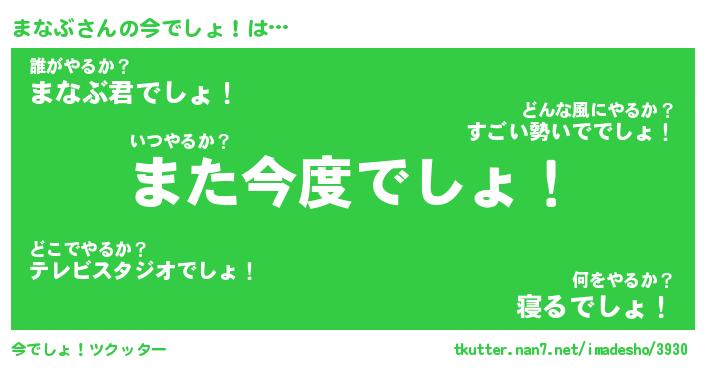 | ピコ太郎風あだ名 | 『マコ一郎』『ピマ太郎』『マナ六郎』 |